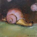 The modeling paste gives the panels a highly textured surface, most paintings can actually be felt.
